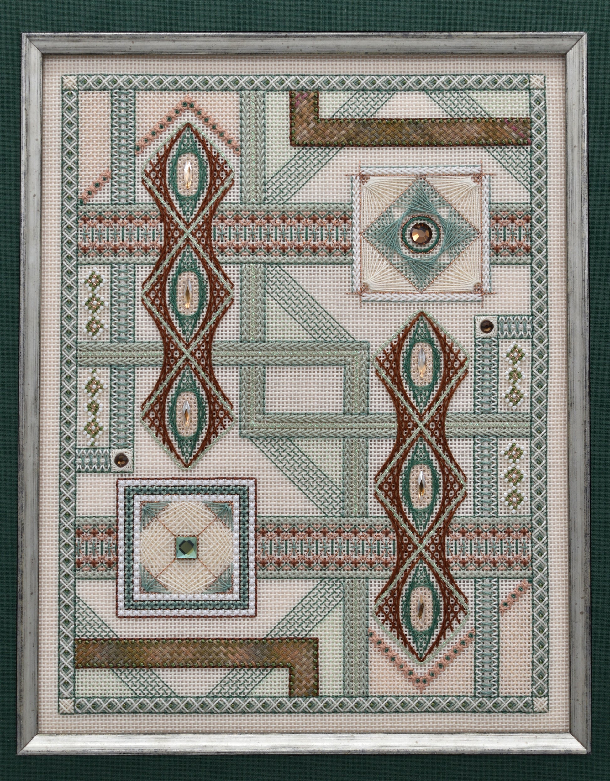Mystic Convergence is an interpretation of Aristotle’s quote – “The whole is greater than the sum of its parts”. Simple to complex line designs are interwoven to create an intriguing sampler that will challenge and delight the stitcher. A bolder version of Mystic that makes a statement. This version offers the greatest contrasts of all the different versions.