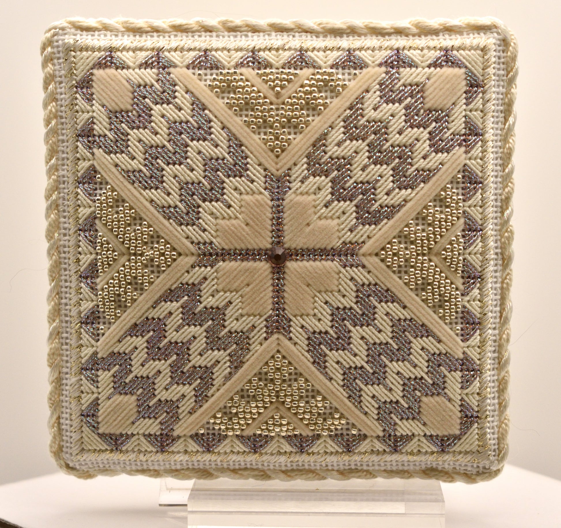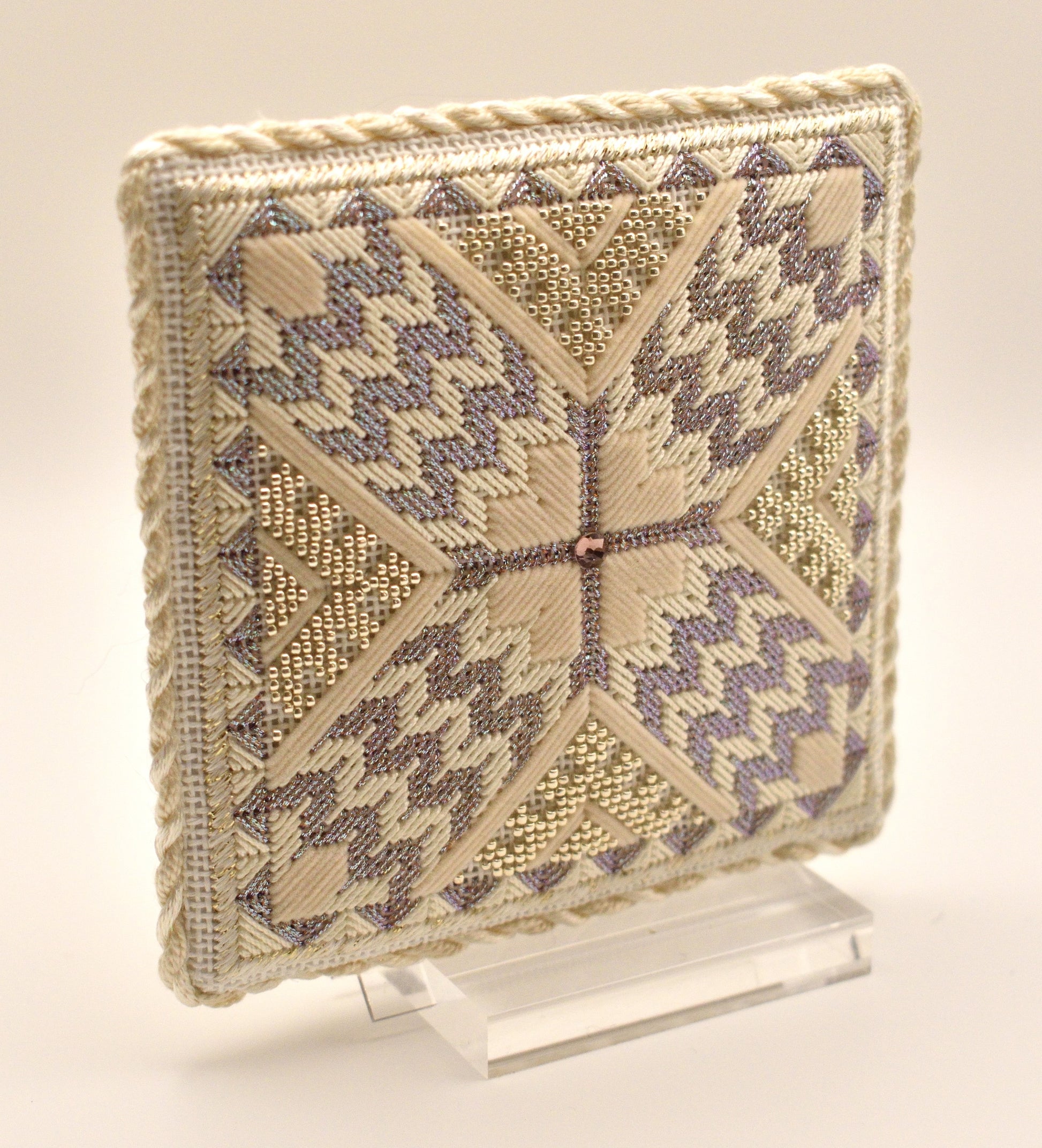 Understated elegance almost Victorian but with a modern twist. This 4 x 4 ornament can be used all season long and will be treasured forever.